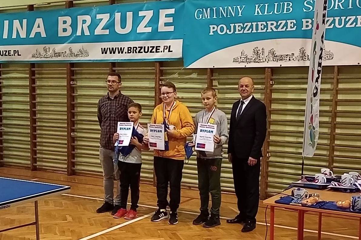 Piątkowe popołudnie 19 listopada upłynęło w sportowym duchu. W sali gimnastycznej szkoły w Ostrowitem sześćdziesięciu czterech zawodników stanęło w szranki przy stołach tenisowych. Dzieci, młodzież i dorośli uczestniczyli w Gminnym Turnieju Tenisa Stołowego, który w gminie Brzuze cieszy się od wielu lat niezwykłą popularnością. Wśród dziewcząt (kat. szkoły podstawowe) zwyciężyła Natalia Mejer, drugą lokatę zdobyła Julia Rykaczewska a trzecią Agata Górecka. W kategorii chłopcy (kat. szkoła podstawowa) na najwyższym podium stanął Krzysztof Boniecki, drugi był Karol Dunajski, a trzecie miejsce wywalczył Marek Małkiewicz. W kategorii młodzież szkół średnich oraz dorośli bezkonkurencyjny okazał się Paweł Pesta. Na kolejnych pozycjach zaleźli się Jakub Tęgowski i Tomasz Wiśniewski. Daria Pesta i Marek Małkiewicz otrzymali wyróżnienia jako najmłodsi zawodnicy rozgrywek.