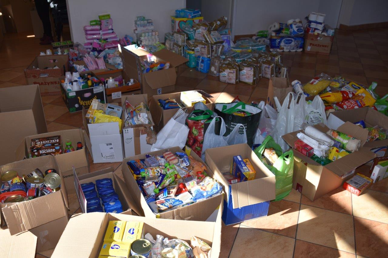 W odpowiedzi na nasze ogłoszenie, mieszkańcy gminy dostarczyli głównie żywność, środki higieny i czystości oraz koce. Dziękujemy wszystkim darczyńcom, a także osobom zaangażowanym w organizację zbiórki i segregację artykułów.