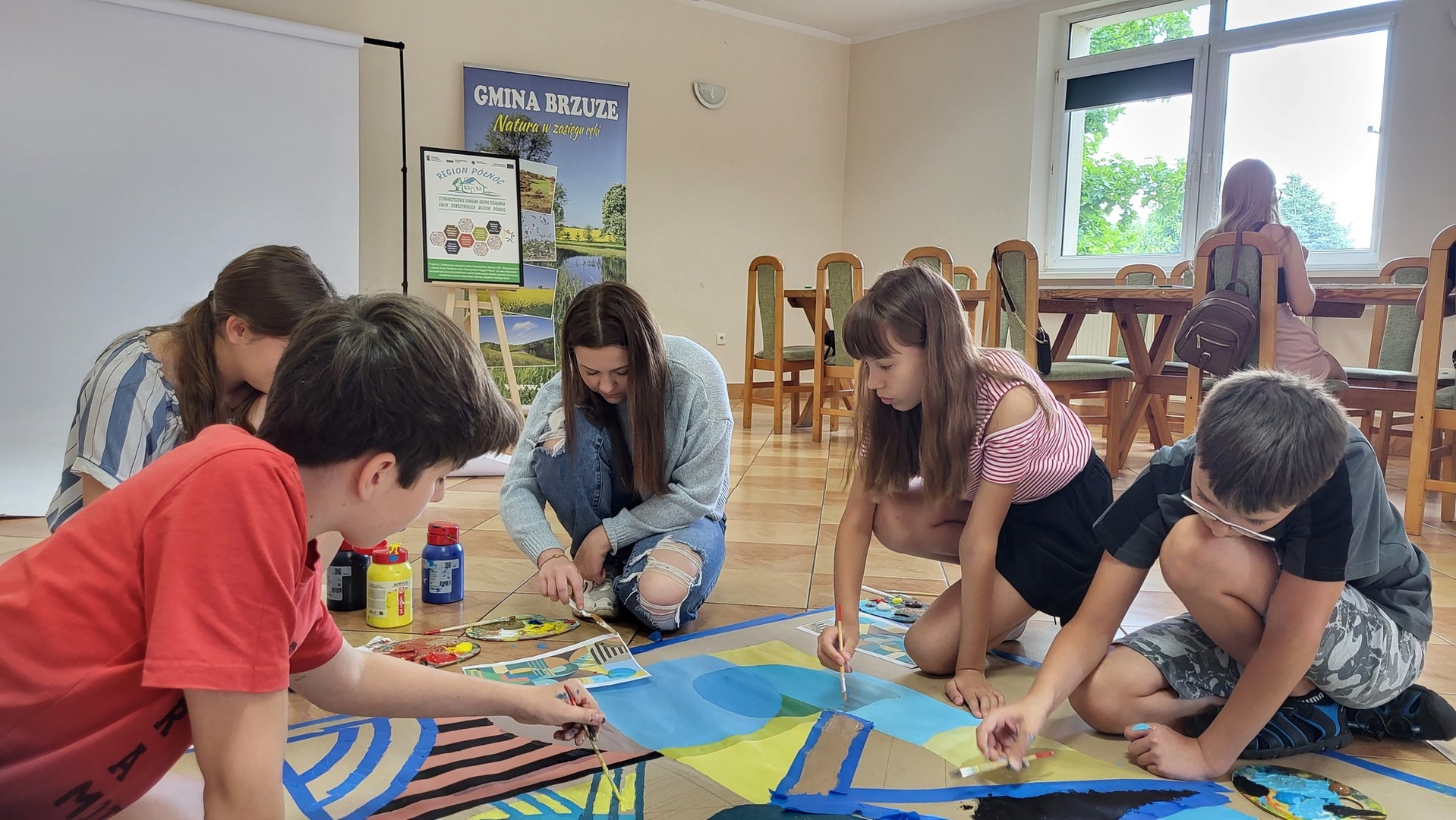 W Centrum Aktywności Lokalnej w Brzuzem trwa projekt artystyczny dla dzieci i młodzieży. W programie, trwających przez okres wakacyjny zajęć, zaplanowano warsztaty malarskie, rzeźbiarskie i fotograficzne, a także wyjazdy do galerii sztuki. Obecnie piętnaścioro młodych artystów doskonali swoje umiejętności i rozwija plastyczne zainteresowania, pod okiem Aleksandry Kubackiej studentki piątego roku Wydziału Sztuk Pięknych UMK w Toruniu. Za nimi między innymi pierwsze szkice ołówkiem, rysunek węglem i praca przy sztalugach.