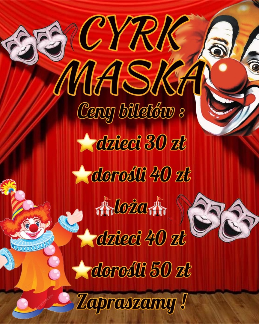 W imieniu organizatorów zapraszamy dzieci, młodzież i dorosłych na widowisko Cyrku „Maska” w Ostrowitem (plac przy szkole). Początek o godzinie 17.00.